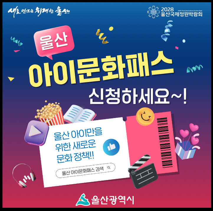 울산시가 2025년 6월부터 초등학생을 위한 문화예술 활동 지원사업 ‘울산아이문화패스’를 본격 시행합니다.