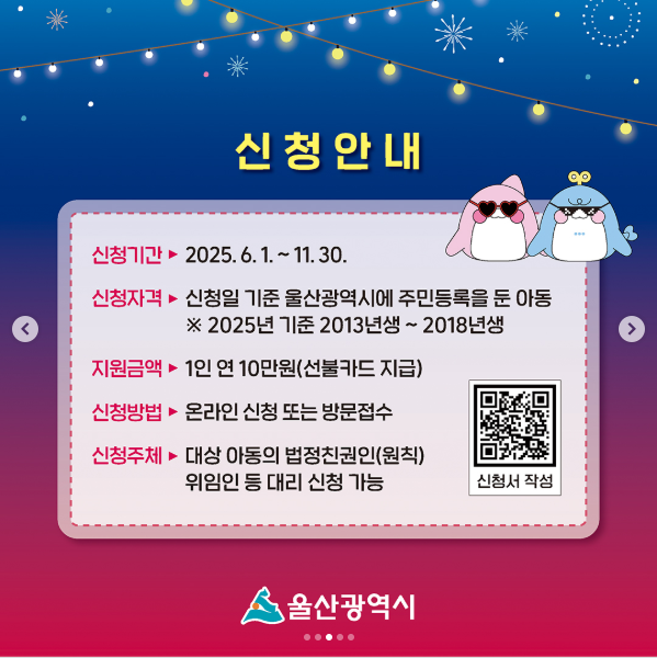 - 거주 요건: 신청일 기준 울산시 주민등록이 되어 있어야 함