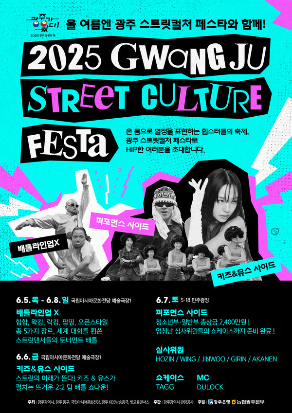 특히 광주 스트릿컬처 페스타는 글로벌 댄서들의 무대를 넘어, 키즈&유스 댄스 배틀, 청소년 및 일반부 대상 퍼포먼스 경연까지 연령과 국경을 초월한 열정의 무대를 만날 수 있습니다.
